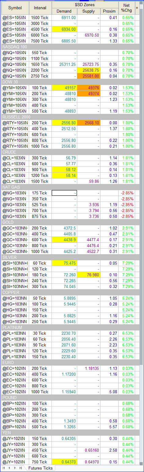 SD Zones includes 20 workspaces for different styles of stock, options and futures trading. They come in both black and white variants for different user preferences. See one of the SD Radar Futures workspaces on our homepage.